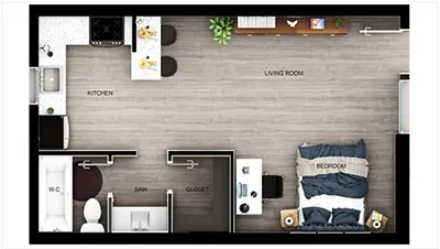 Whether you’re looking for a cozy studio or a spacious one-bedroom, Seventh has a layout to match your lifestyle. Easy, stylish living starts here.
